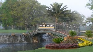 Ground had been broken; construction underway. First on the list was the grand entrance – a welcoming bridge with waterfalls cascading over stacked rock surrounded by the Floridian trademarks – palm trees and southern live oak trees dripping with Spanish moss. Not an easy task to bring in giant boulders and construct a vault to house the waterfall mechanicals. What a grand entrance it was and is today.